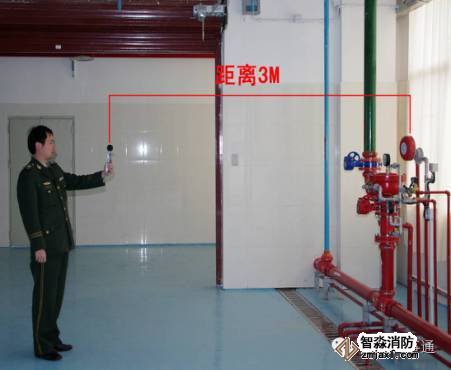 2.用聲級計測量報警閥動作后,距水力警鈴3m處聲壓級不低于70dB,圖3-2。