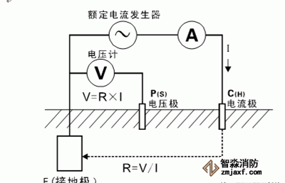 條件:必須有兩個接地棒:一個輔助地和一個探測電極。各個接地電極間的間隔5至10米。原理是在輔助地和被測地之間加上電流,測量被測地和探測電極間的電壓降,測量結(jié)果包括測量電纜本身的電阻。