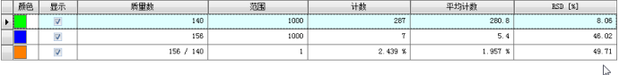 以18M Ω.cm的超純水進(jìn)樣,測(cè)量測(cè)量質(zhì)量數(shù)9,115,209處的離子計(jì)數(shù),積分時(shí)間0.1s,分別測(cè)量11個(gè)數(shù)據(jù),用測(cè)量結(jié)果的標(biāo)準(zhǔn)偏差SA的3倍除以Be、In、Bi的寧明的S,結(jié)果即為各元素的檢出限,CL=3SA/S。