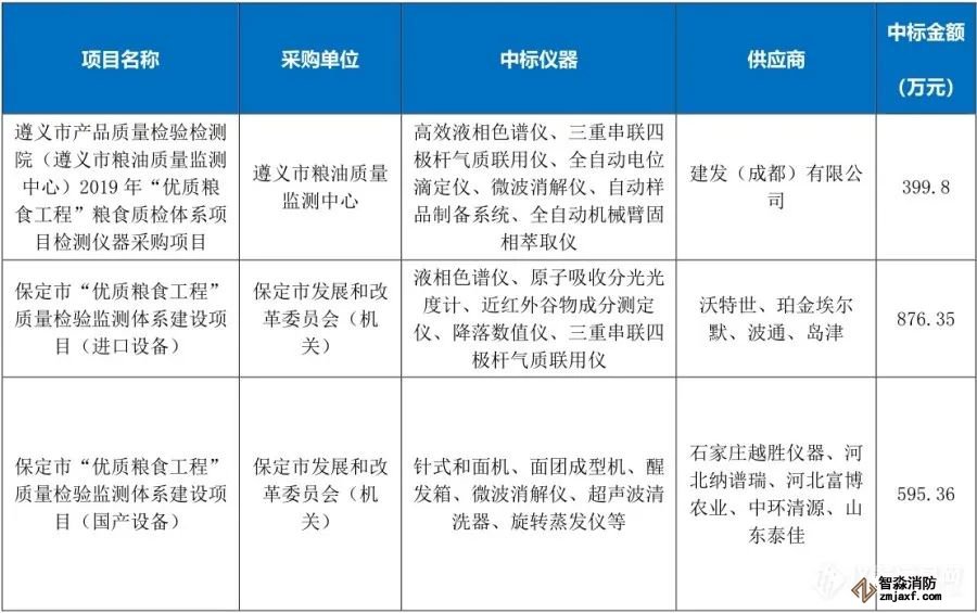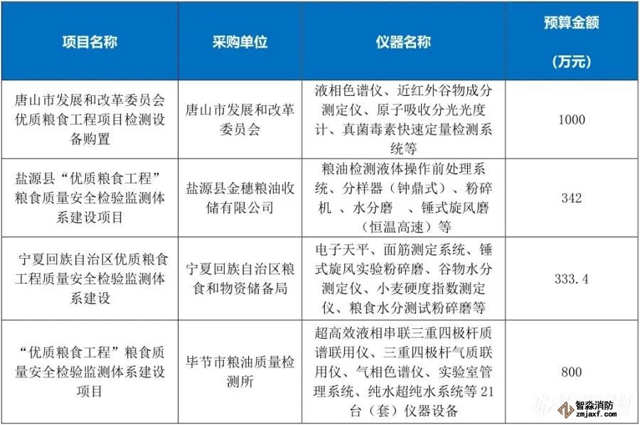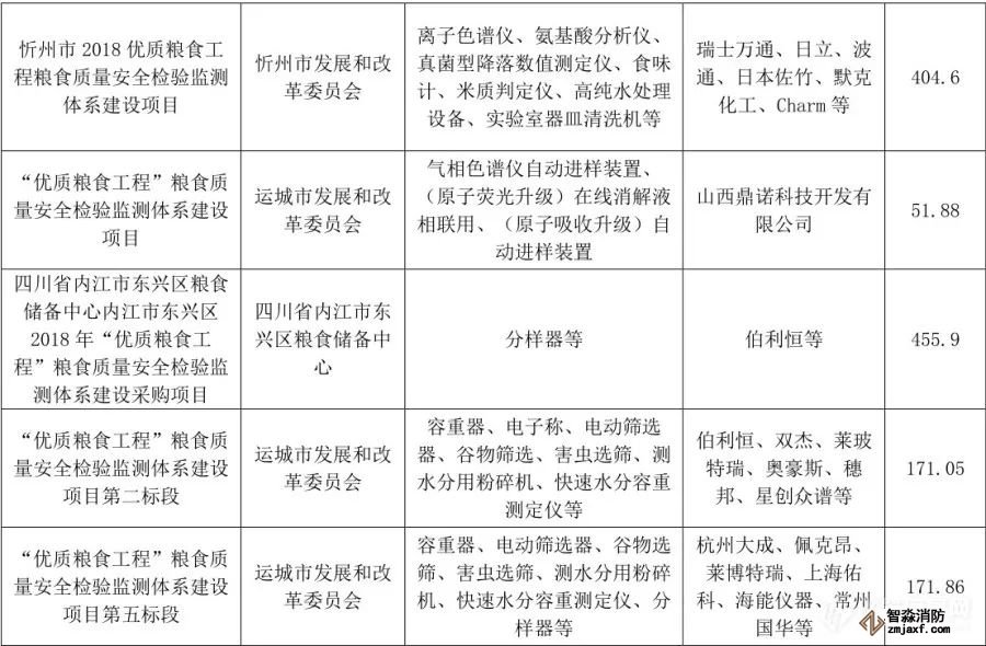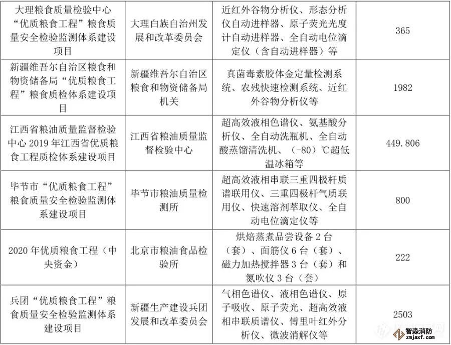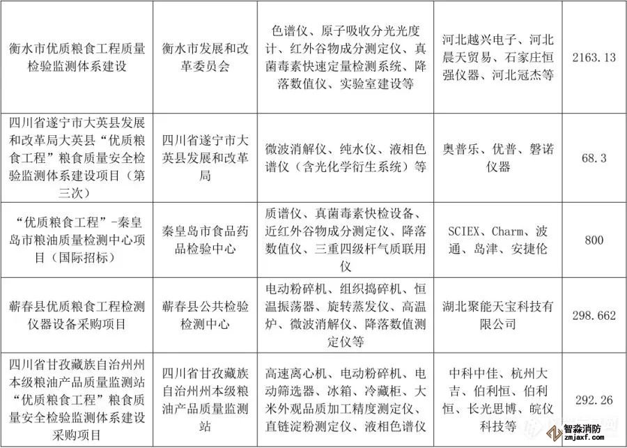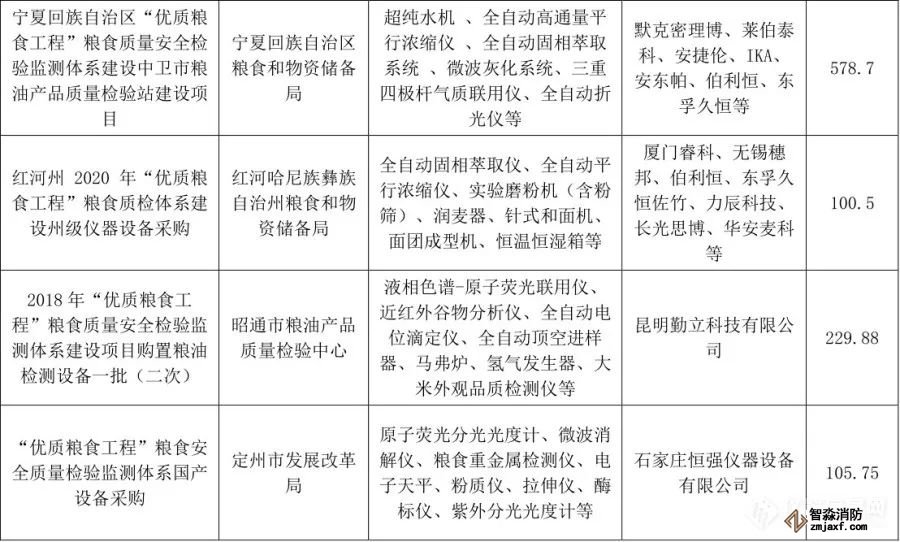 “優(yōu)質(zhì)糧食工程”儀器相關中標項目列表(1月1日至6月30日)