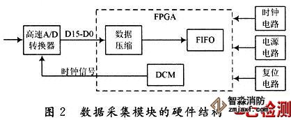 圖2給出本文數據采集模塊的硬件結構框圖,它由高速A/D數據