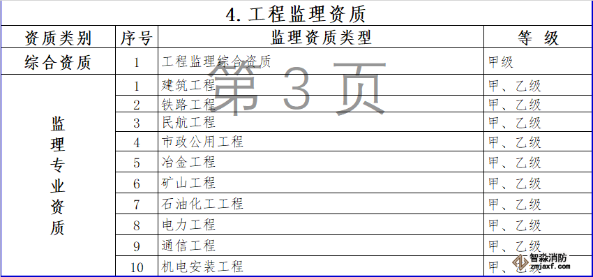 消防設(shè)施施工專業(yè)承包資質(zhì)和其他幾項(xiàng)資質(zhì)合并為通用類專業(yè)承包,不分等級(jí)。