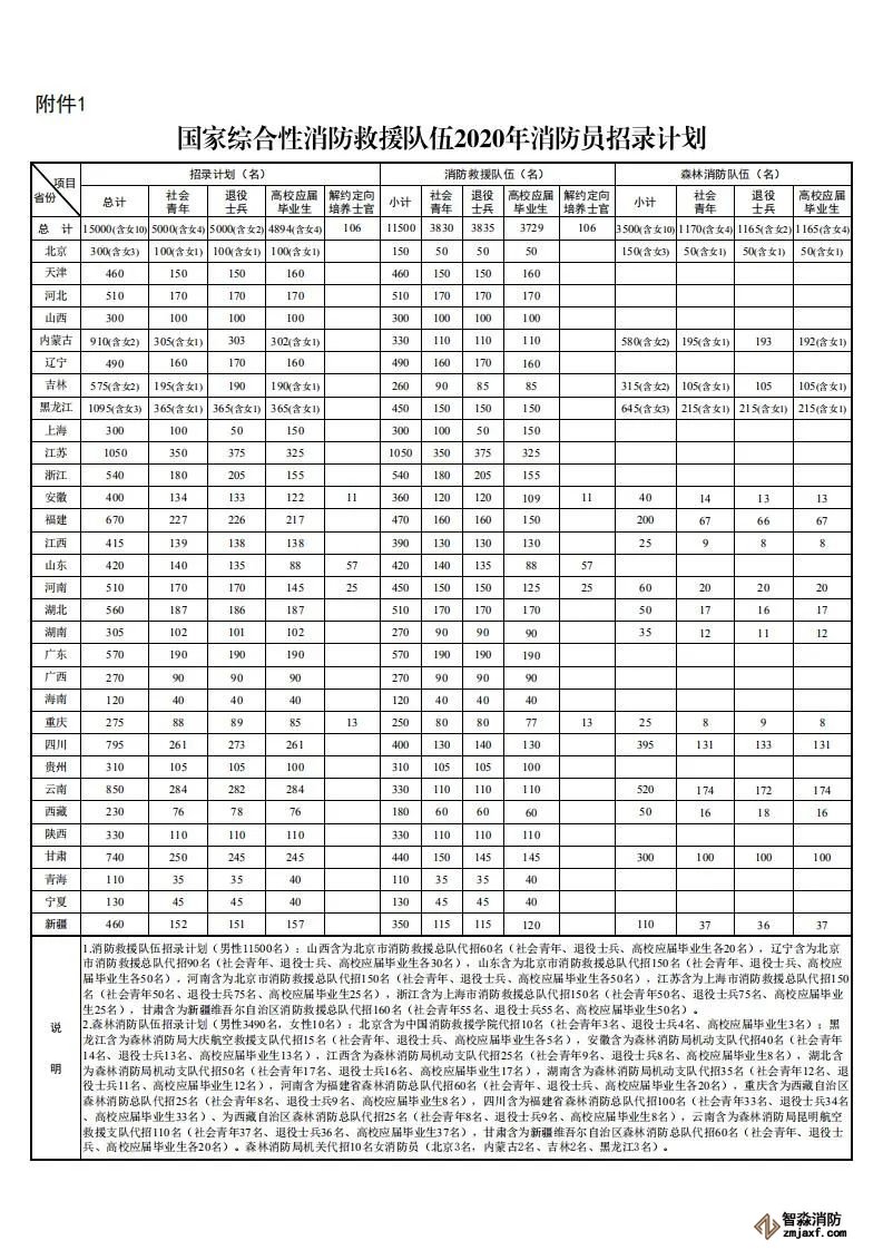 15000人!國家綜合性消防救援隊伍2020年面向社會招錄消防員的公告(附計劃表)