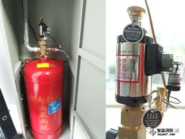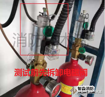 先查看驅動氣瓶(或預制式滅火劑儲氣瓶)的電磁閥啟動信號線是否已經連接,若已連接須拆卸信號線,以免造成誤噴事故,檢測完畢復位后,須用萬用表測量信號線電壓是否恢復正常方可連接。